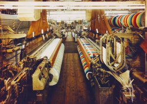 In der Textilindustrie sind Spulen für die Herstellung und Verarbeitung von Garnen unverzichtbar. Je nach Aufgabenfeld werden verschiedene Spulen verwendet. Bei den hier ausgestellten Spulen liegt die Vermutung nahe, dass diese zur Weiterverwendung des Garns beim Stricken oder Wirken verwendet wurden.