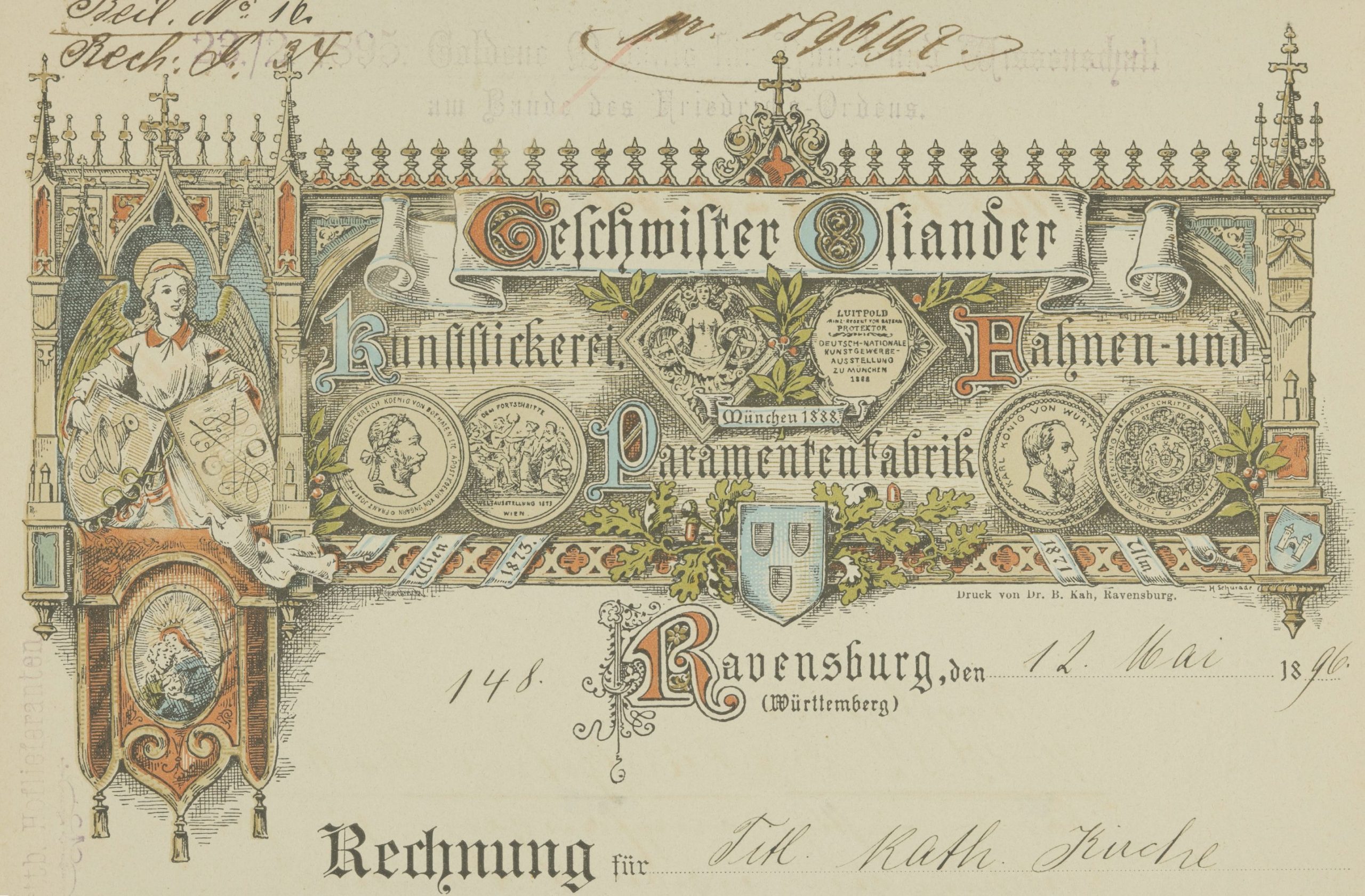 Im Auftrag der Zwirnerei & Nähfadenfabrik Göggingen konzipierte Friedrich Fischbach (1839–1908), damals Lehrer für Ornamentik an der königlichen Akademie zu Hanau, kleine Musterkarten für Stick- und Häkelarbeiten. Jedem verkauften Garnpäckchen lagen diese Musterkarten bei, sie dienten den Damen als mögliche Vorlage für ihre Handarbeiten und bewarben die Garnqualität des Unternehmens.